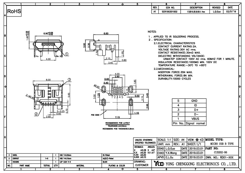 MICRO USB B TYPE SMD 5P BLACK