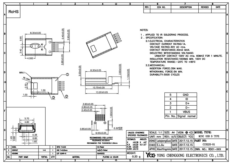 MICRO USB B TYPE 5P MALE PLUG BLACK