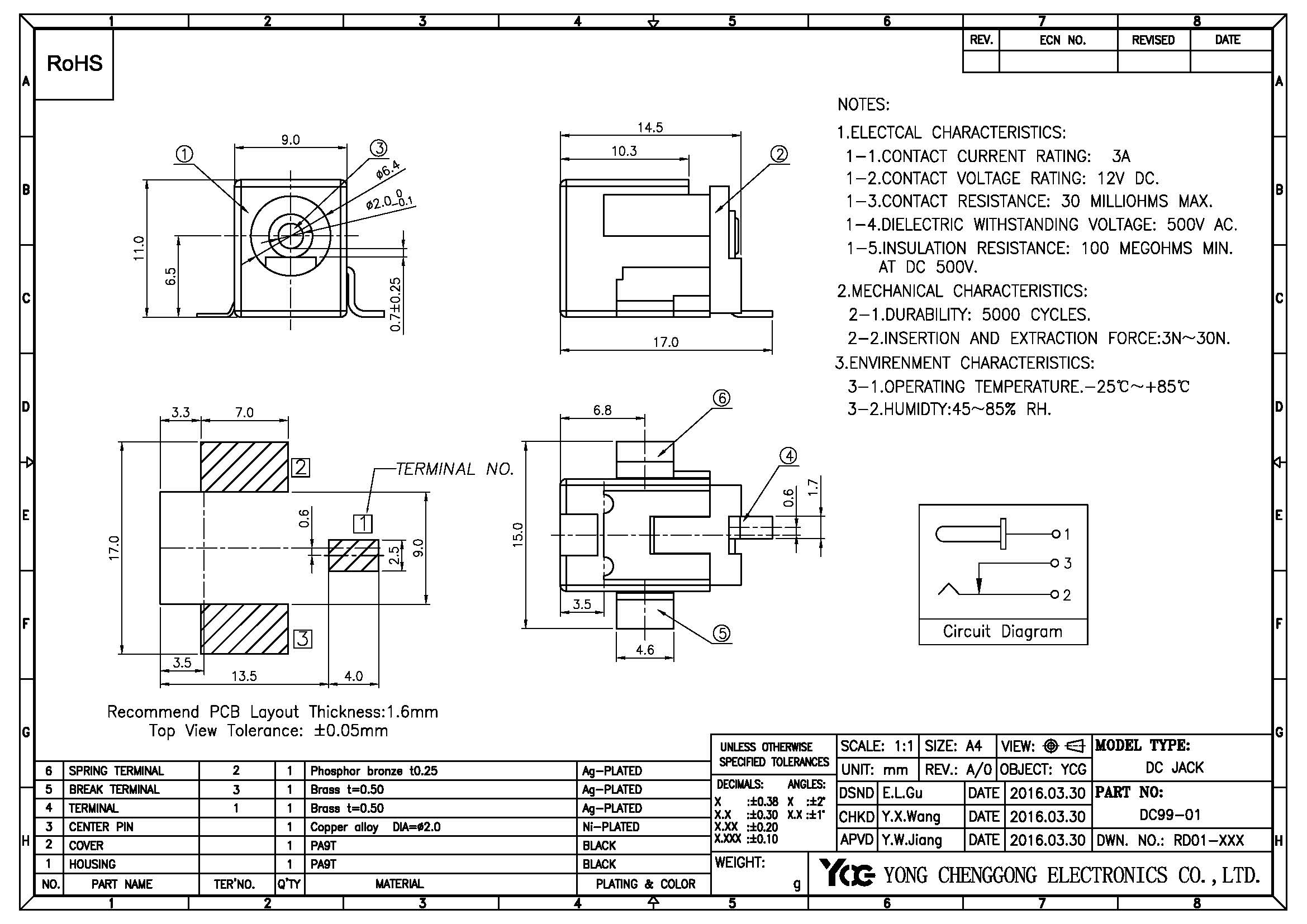 DC POWER JACK,φ2.00mm R/A SMD