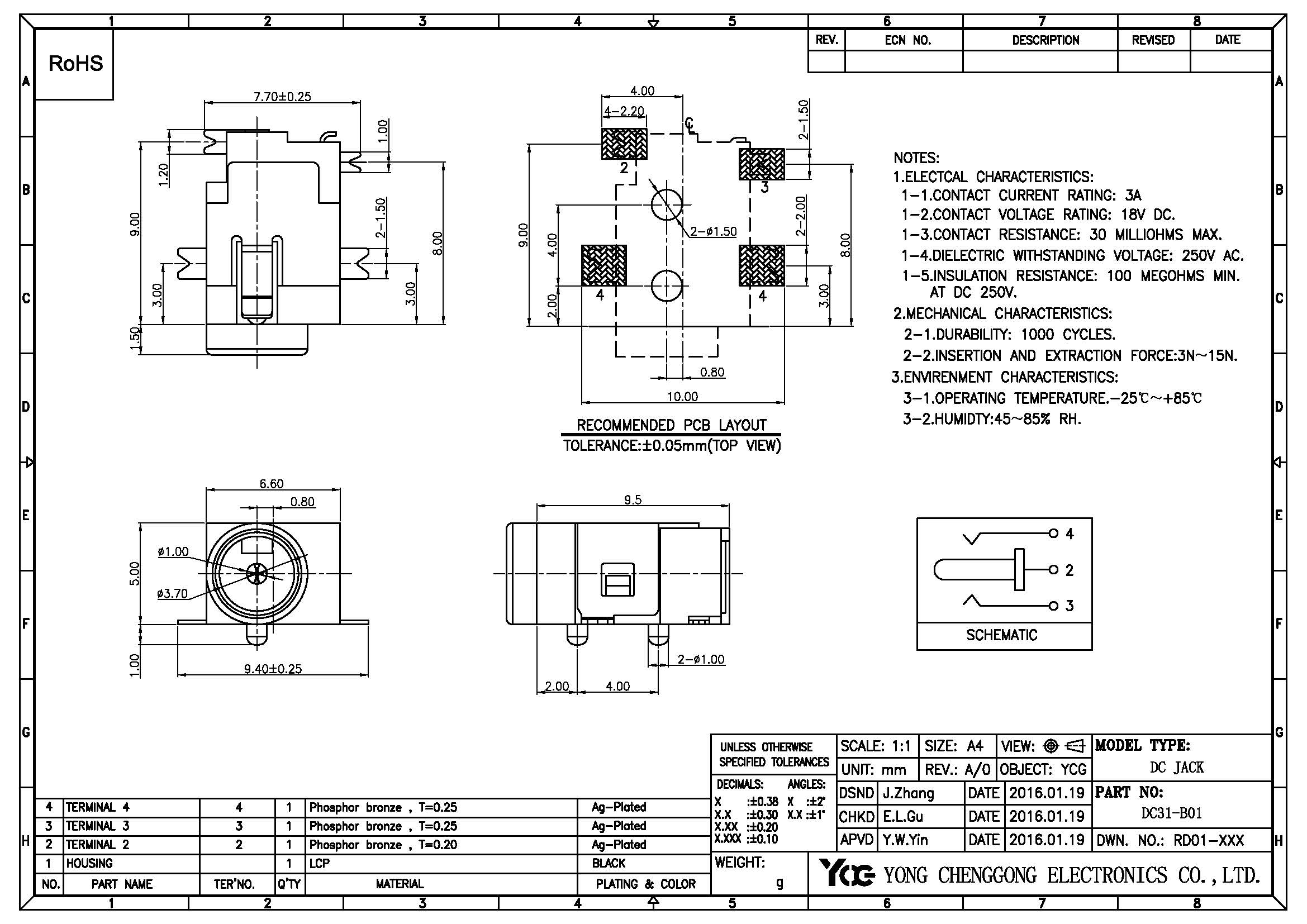 DC POWER JACK φ1.0mm R/A SMD