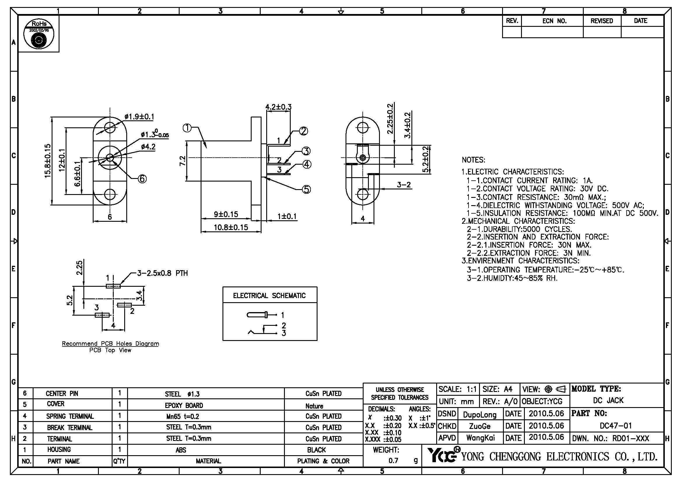 DC POWER JACK φ1.30mm V/T DIP,H10.8mm ,With/Without Ear(Optional)