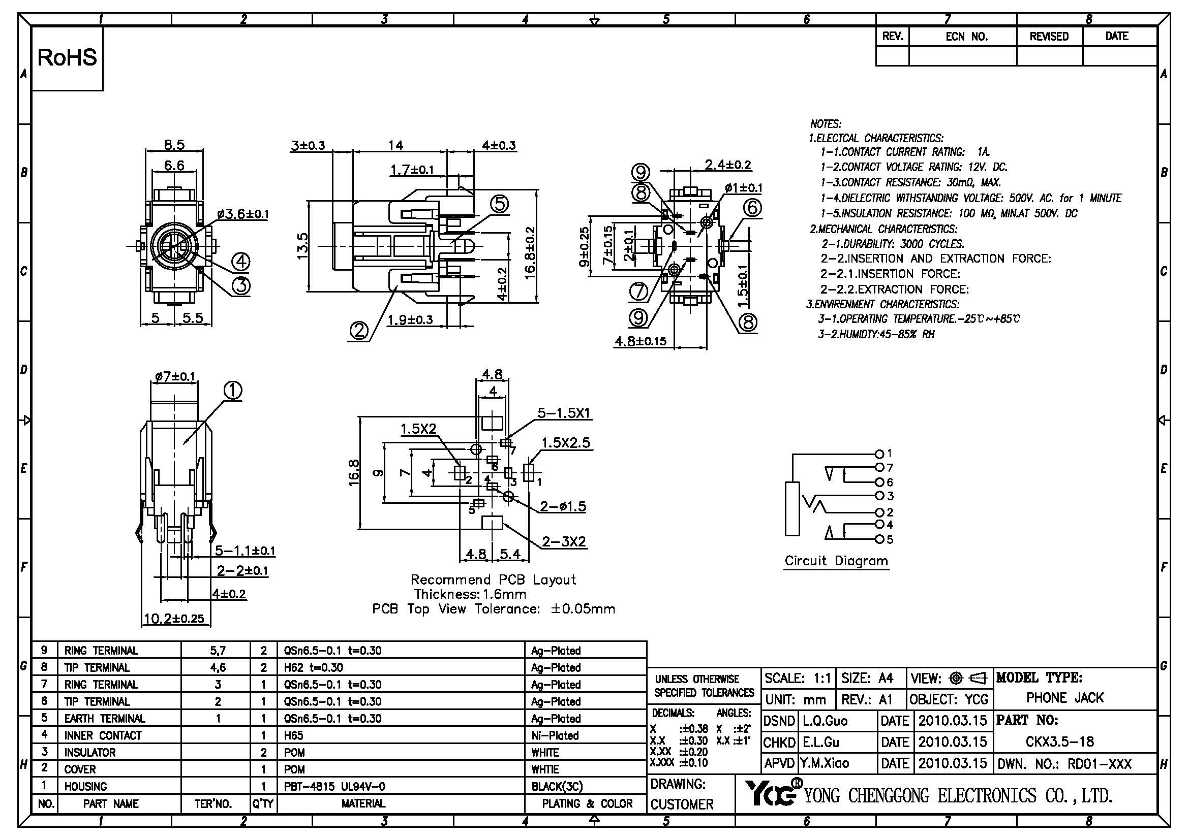 PHONE JACK φ3.6mm,V/D,4 Poles DIP,BLACK