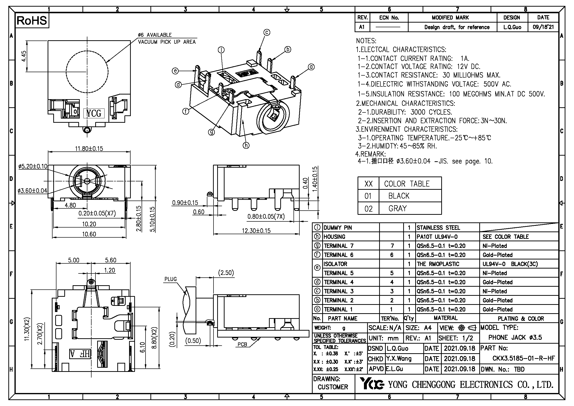 PHONE JACK φ3.6mm,R/S,4 Poles,BLACK