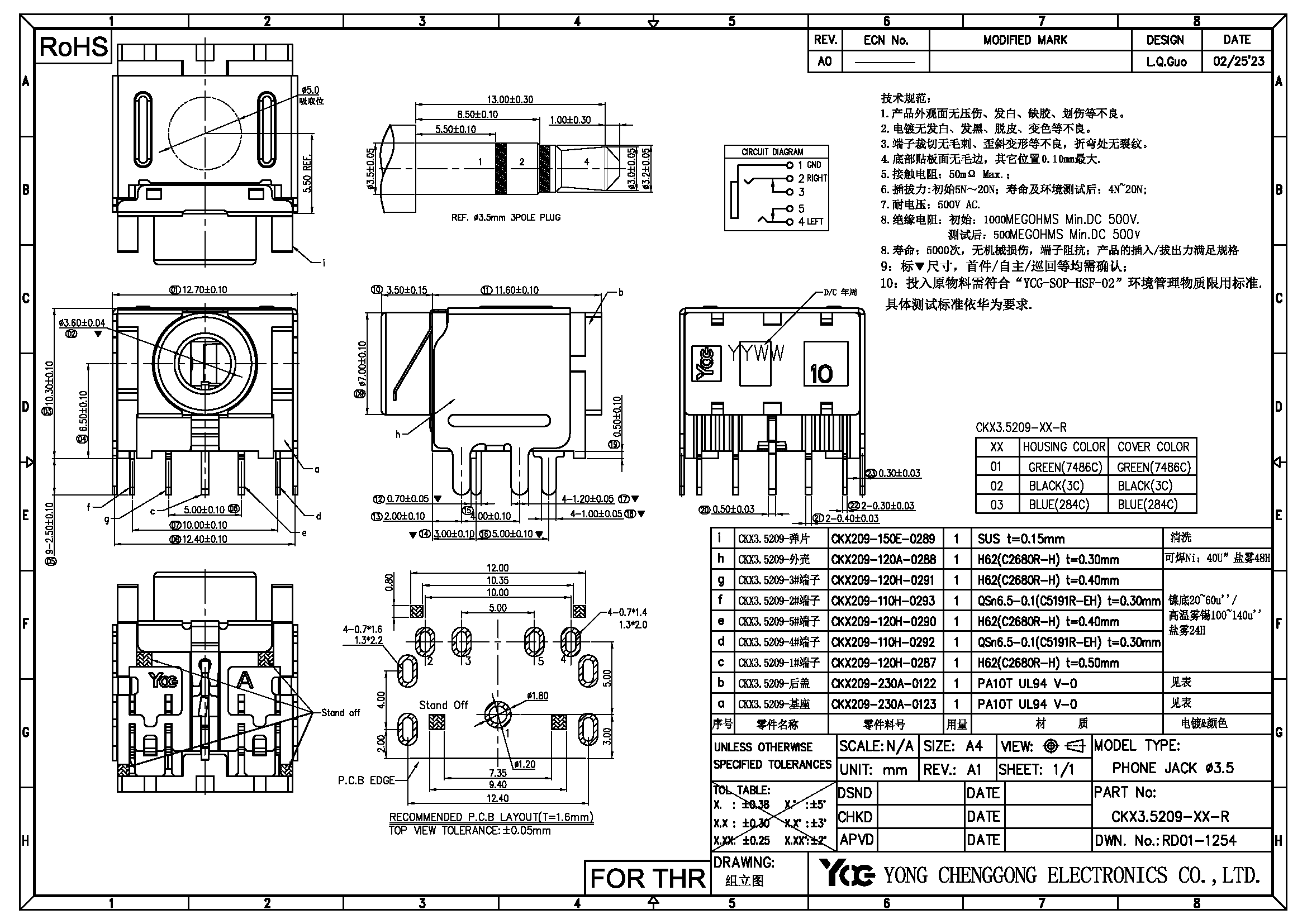 PHONE JACK φ3.6mm,R/S,3 Poles,BLACK