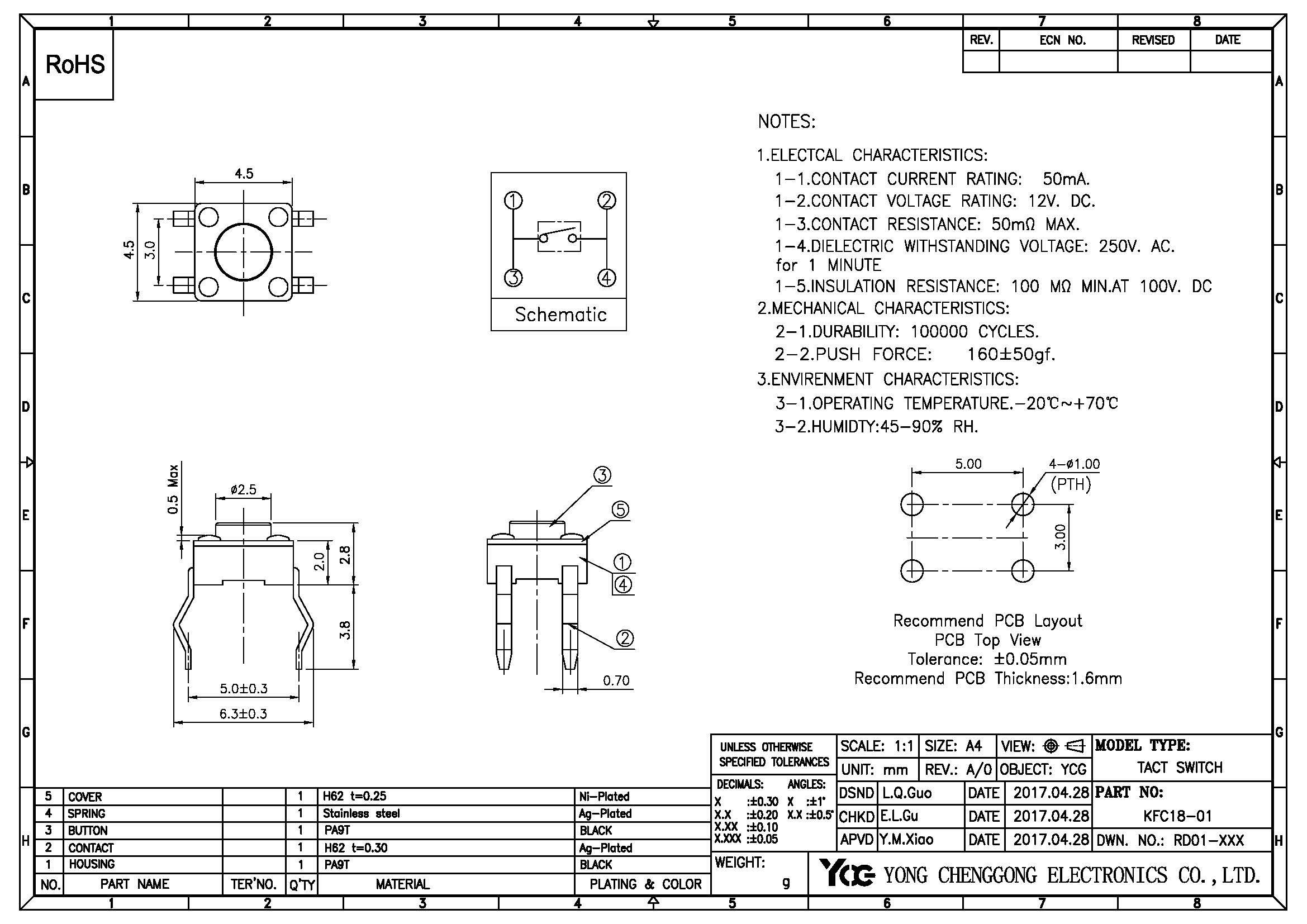 TACT SWITCH V/D H2.8.~H4.50MM, 100gf/160gf/260gf±50gf,The Buttom is available in Red & Black&Gray