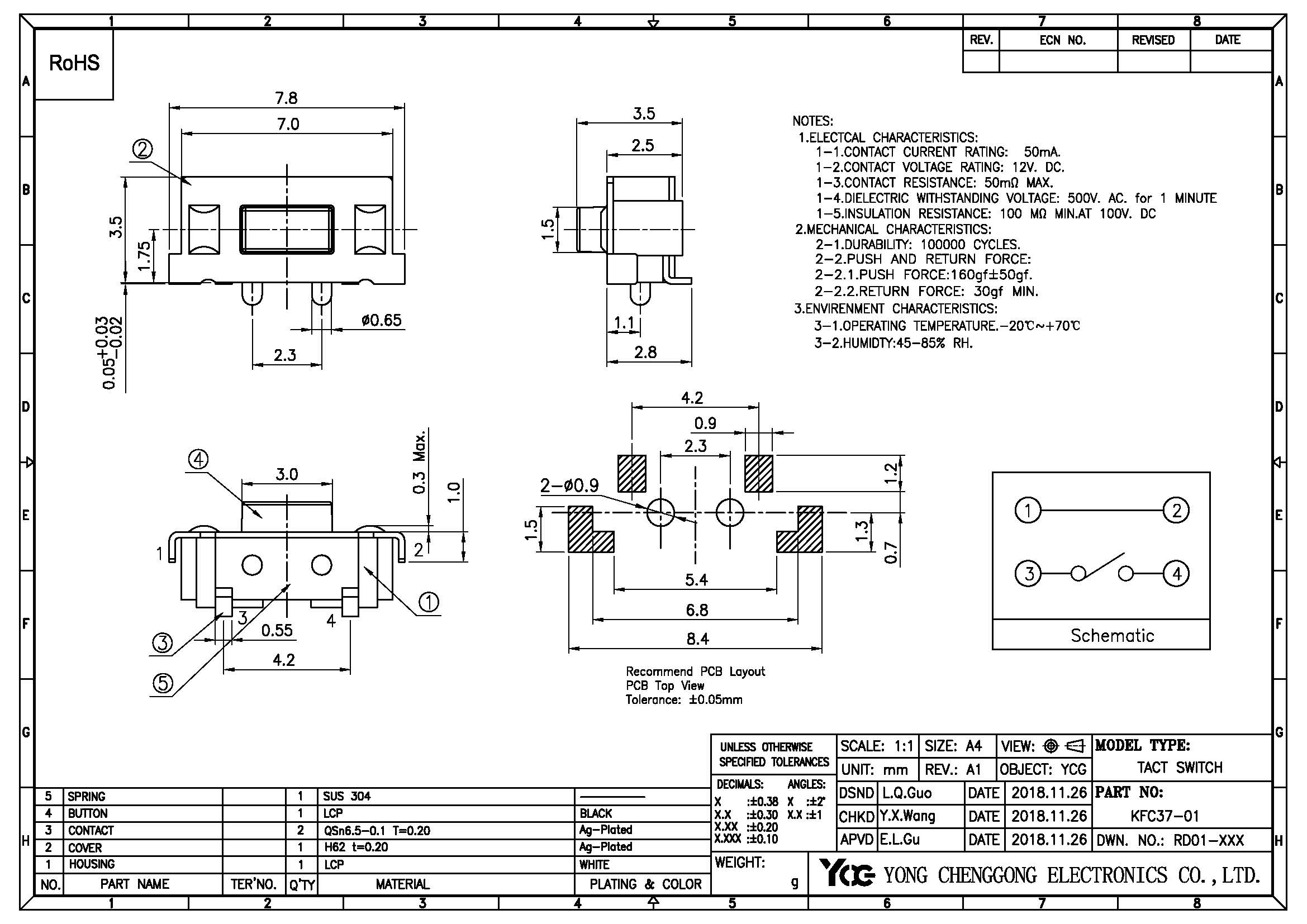 TACT SWITCH R/S,CH1.75MM,160gf/250gf±50gf