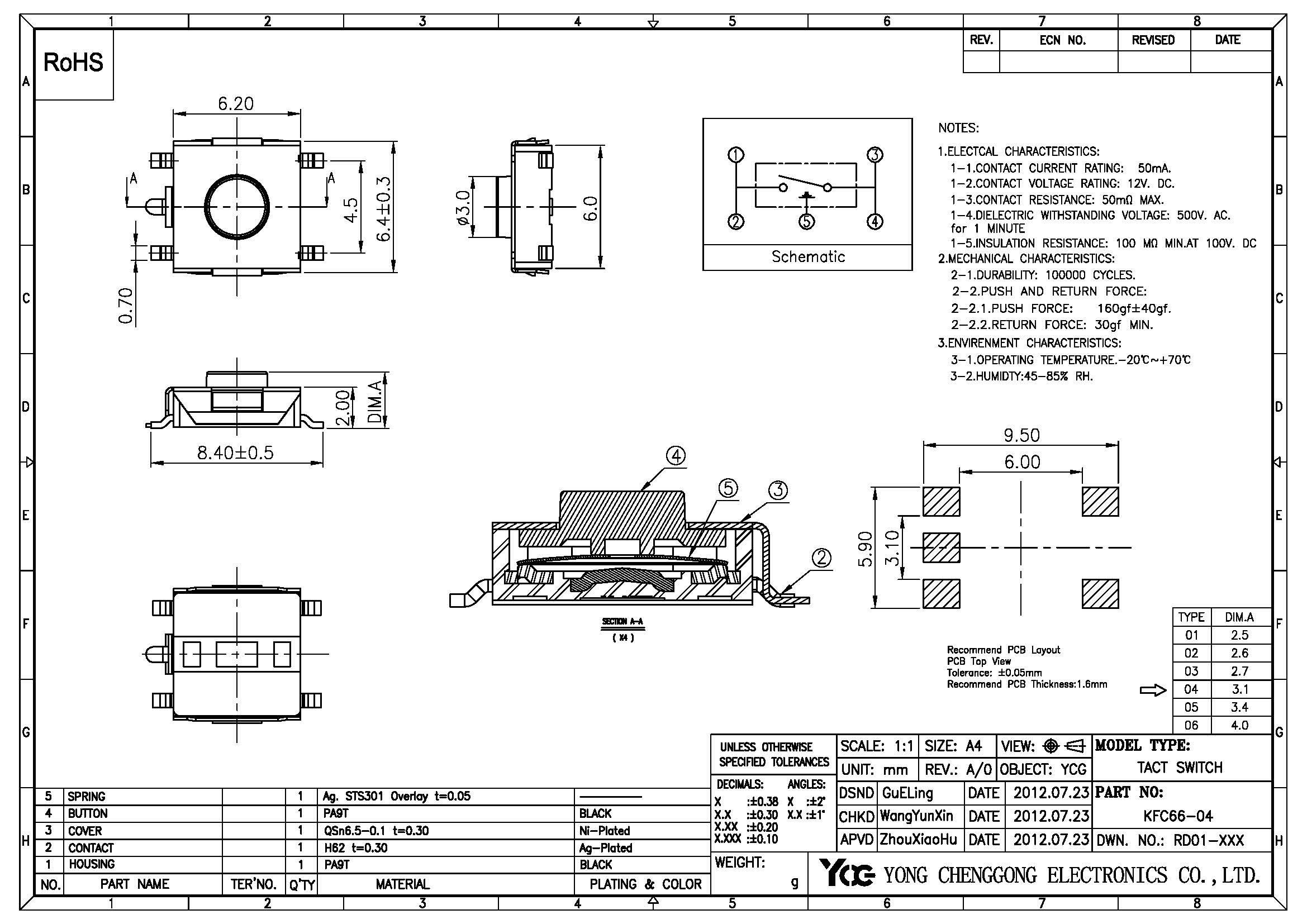 TACT SWITCH V/S,L6.2*W6.4*H2.5~H4.0,160gf±50gf,Black