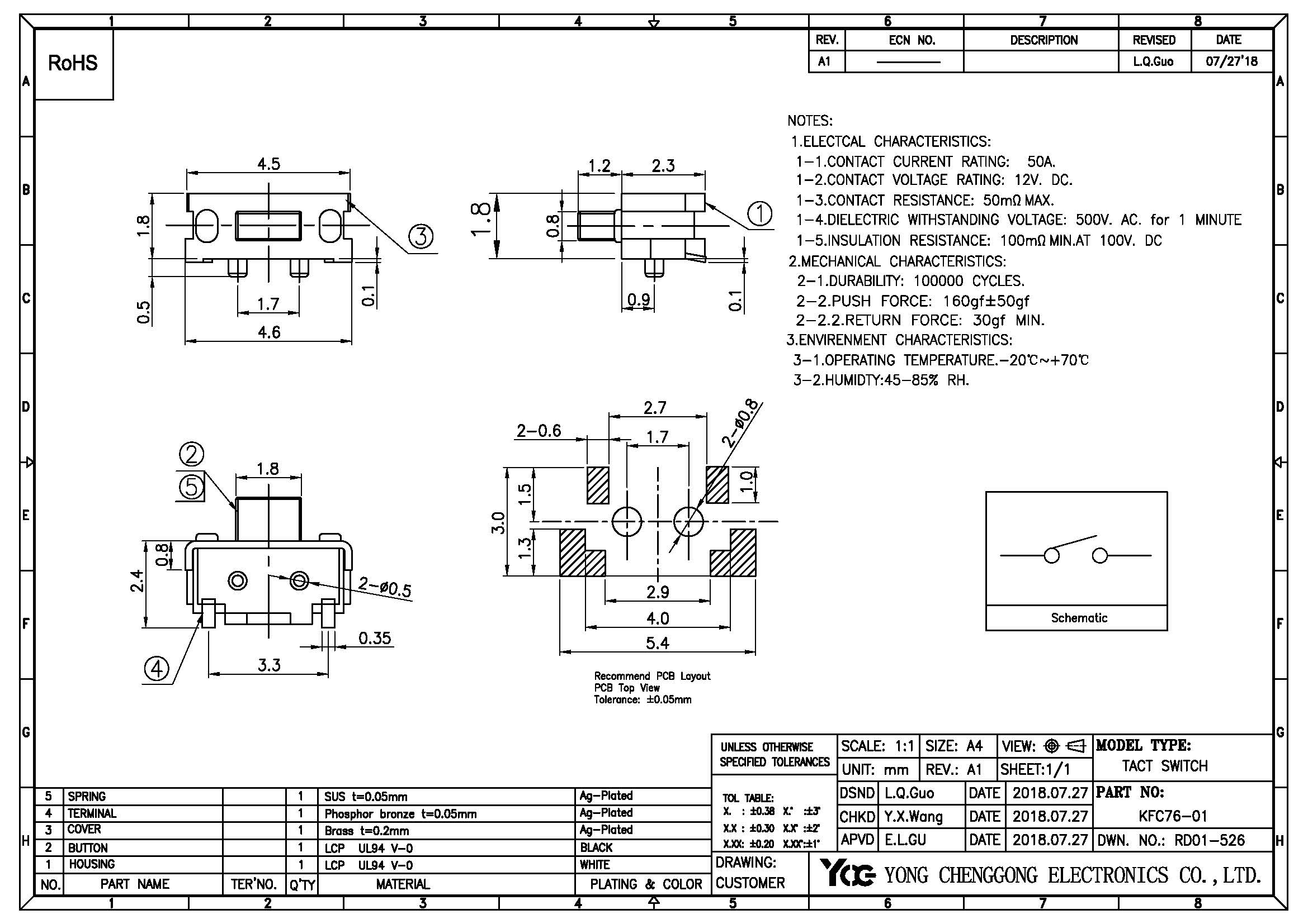 TACT SWITCH R/S,CH1.0MM,160gf±50gf