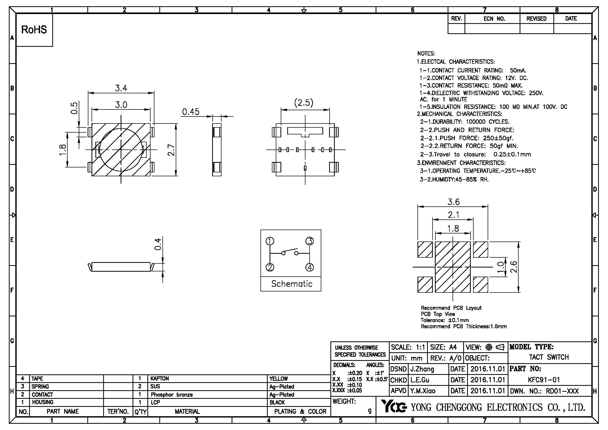 TACT SWITCH V/S,L3.0*W2.7*H0.45,250gf±50gf,Black