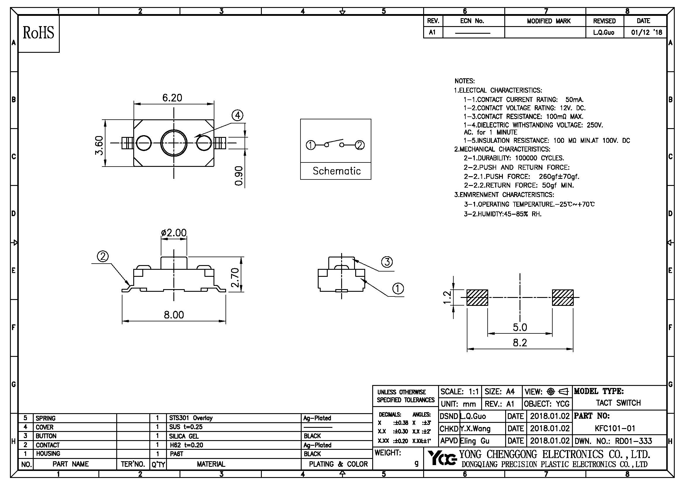 TACT SWITCH V/S,L6.2*W3.6*H2.7,260gf±50gf,Black