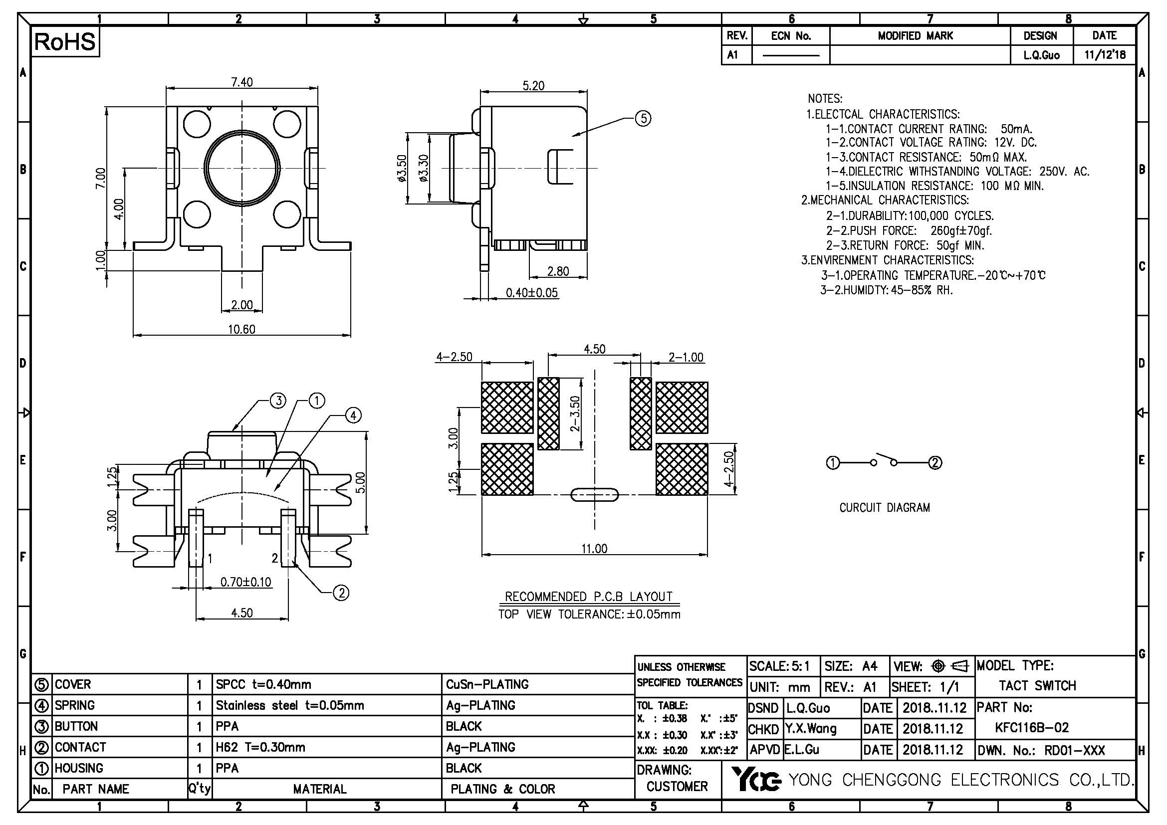 TACT SWITCH R/S,CH=4.0mm,100gf/160gf/260gf±50gf
