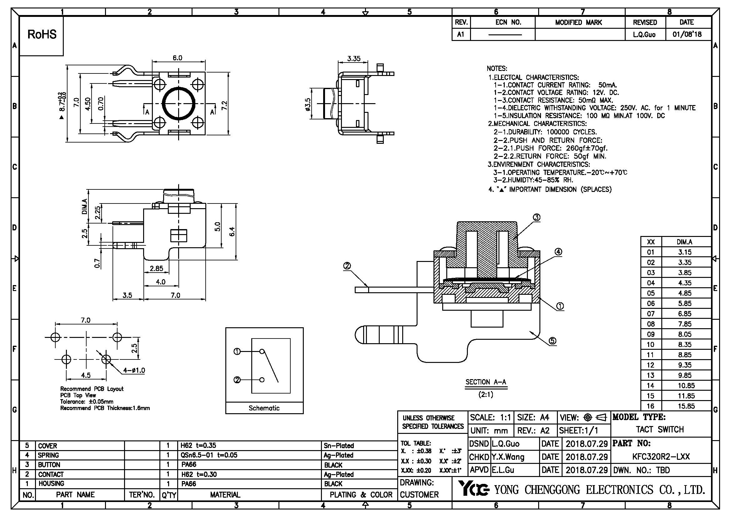 TACT SWITCH R/D,CH=4.0mm,100gf/160gf/260gf±50gf